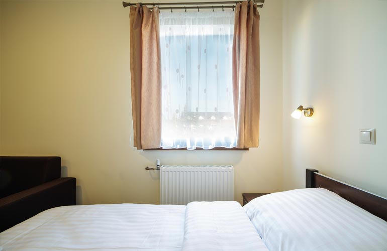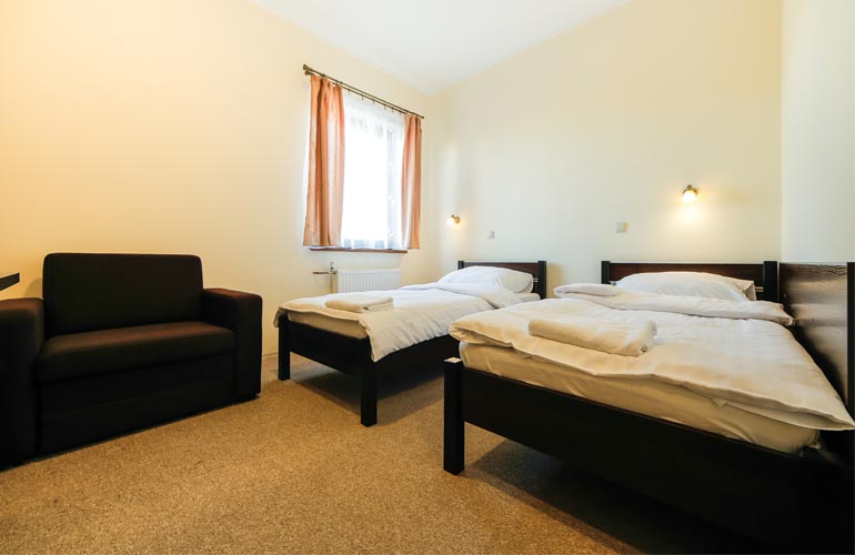 Pokój wyposażony jest w telewizor, Internet bezprzewodowy Wi-Fi, łazienkę z prysznicem wraz z ręcznikami. W pokoju są dwa pojedyńcze łóżka. Jest możliwość dostawienia rozkładanego fotela.